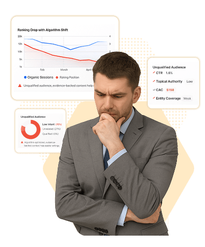We don’t start with keywords. We start with your sales calls, objections, and lost deals. Then we turn those exact problems into conversion pages and AIO/GEO assets so your buyers feel “this is for me”, and book a demo.